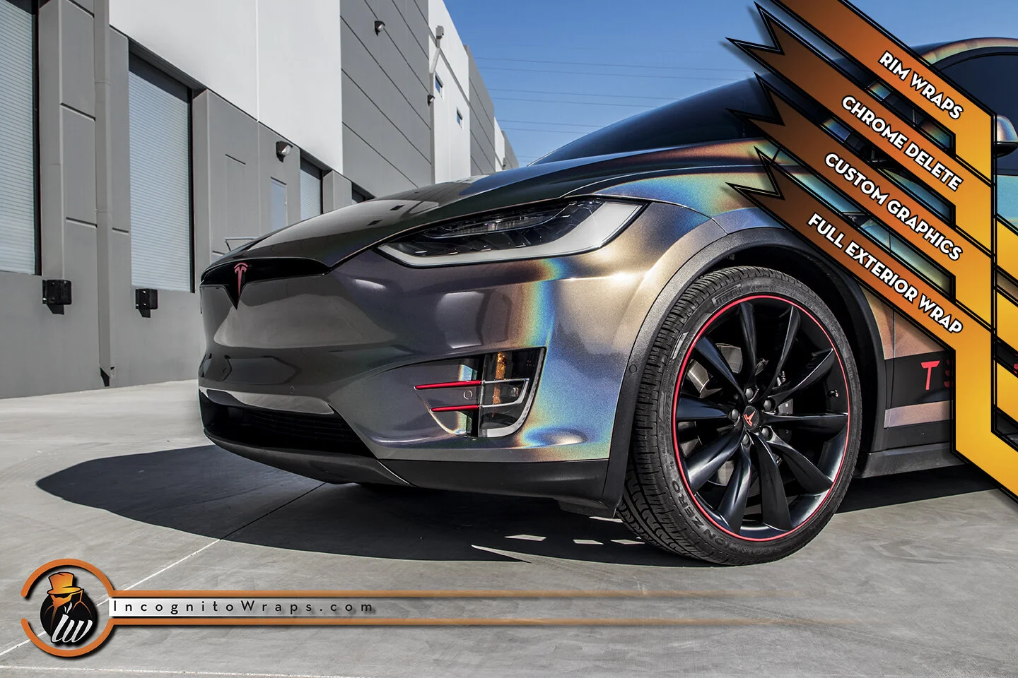 Tesla Model X - Carbon Fiber Chrome Delete, Wrapped Rims and Caliper Wraps
